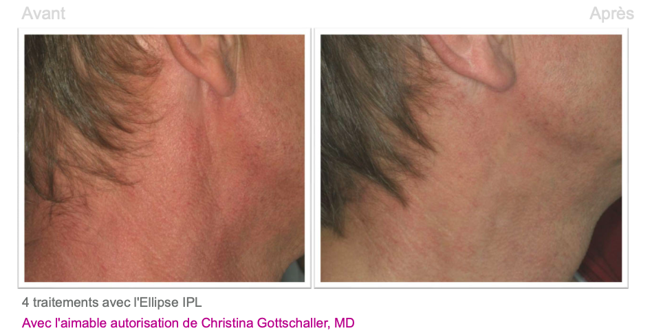 Dans un premier temps, les lésions pigmentaires seront traitées pour atténuer les taches brunes et uniformiser le teint. Une fois cette phase complétée, le traitement des rougeurs liées à la dilatation des vaisseaux sanguins sera effectué.